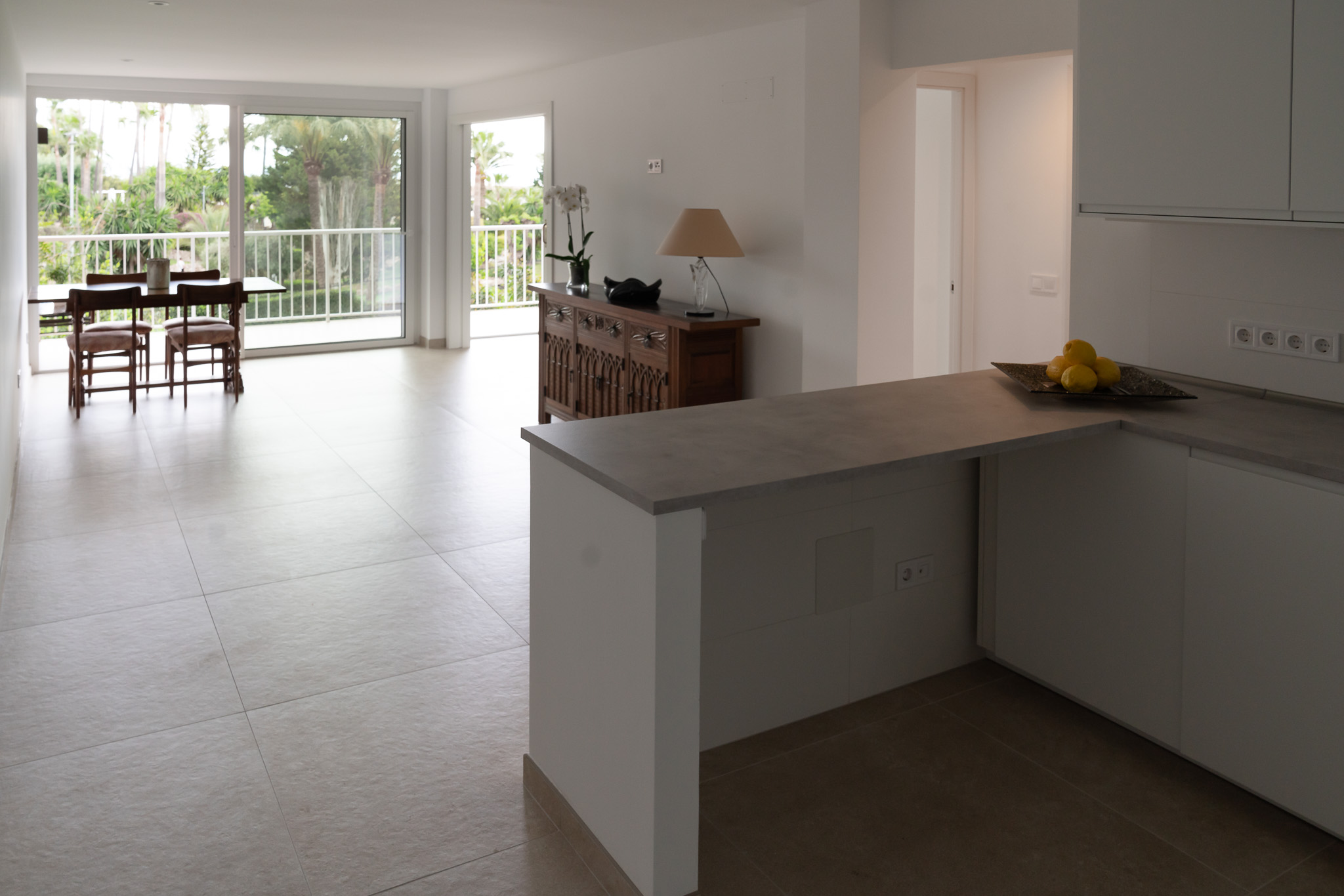 Este apartamento de 105 m² en Palmanova fue completamente transformado. Los espacios oscuros y anticuados dieron paso a interiores luminosos y modernos, con distribuciones abiertas y acabados limpios. La cocina ahora es elegante y funcional, el baño transmite calma y frescura, y la zona de estar está inundada de luz natural. El balcón se ha convertido en un rincón perfecto para relajarse. El proyecto se completó en solo 2,5 meses.